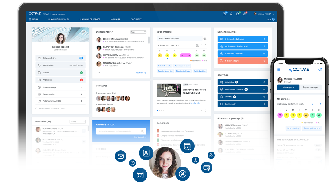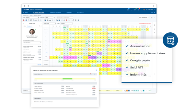 L'objectif du module gestion des temps OCTIME est d'améliorer la gestion organisationnelle en automatisant le suivi des heures, des absences, des congés et des activités des employés, de façon sécurisée et paramétrable.