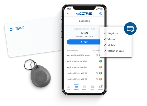 L'interfaçage de systèmes de badgeage physiques, virtuels ou mobiles assure un suivi précis des heures travaillées.